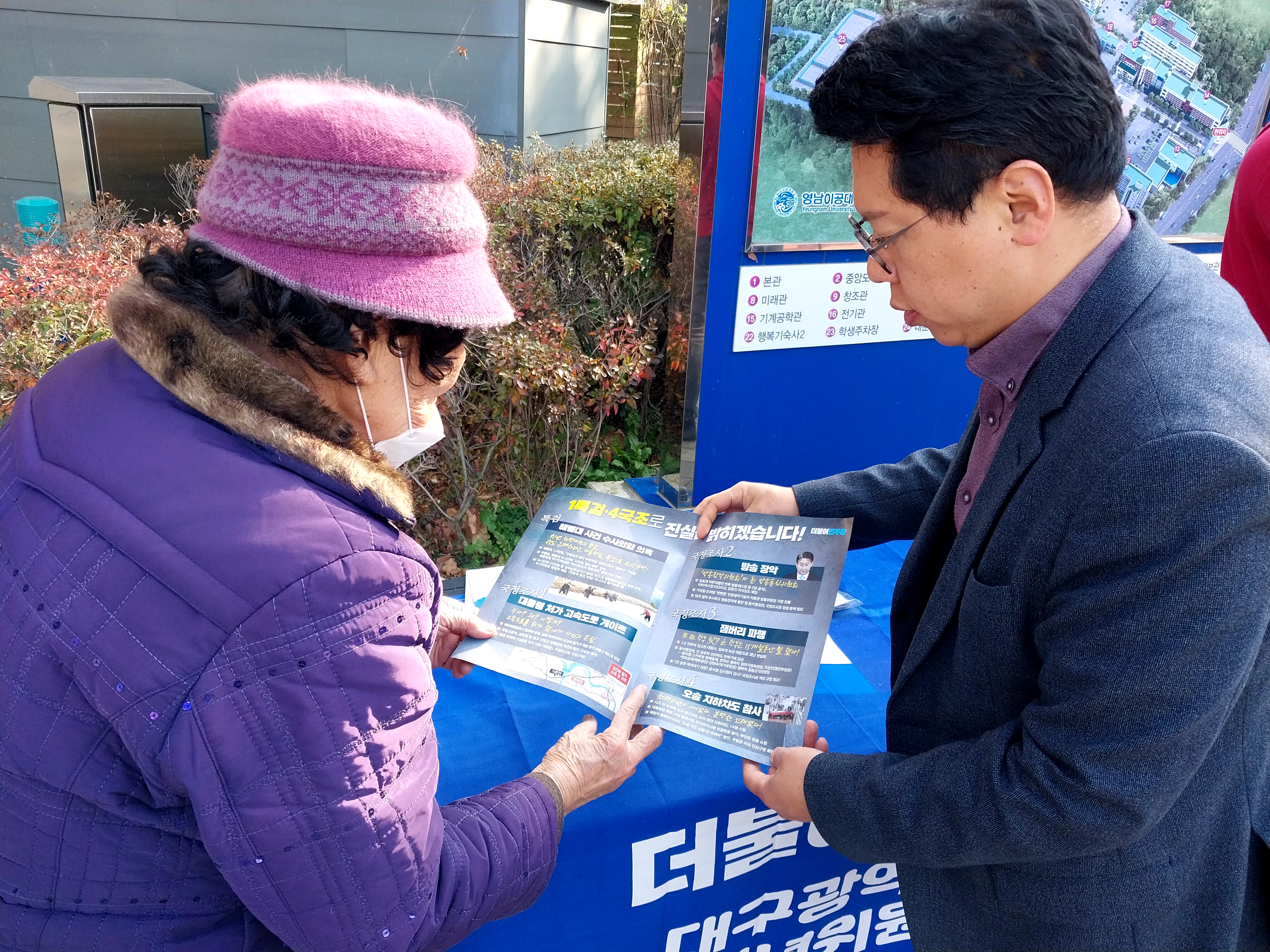 영남이공대학교 정문안녕하십니까, 청년위 장우석입니다. 지난번 계명대학교에서 진행한 청대원소 행사를 이어 이번에 청대원소 행사는 영남이공대학교 정문에서 진행 했습니다. 점심을 먹으러 많은 대학생들과 청년들이 나오면서 응원을 하는 분들도 있으셨고 가끔 비난을 하는 분들도 있었습니다. 영남이공대학교는 유난히 청년 취업에 대해서 관심이 매우 높았습니다. 다음달 12월달에 영남대에서 진행할 청대원소 행사 역시 많은 관심 부탁 드리겠습니다!
