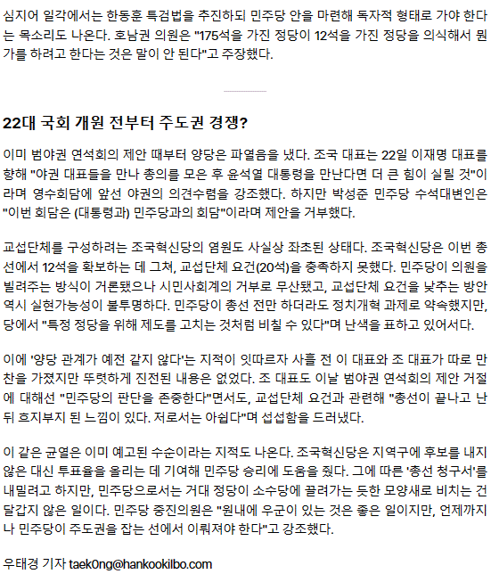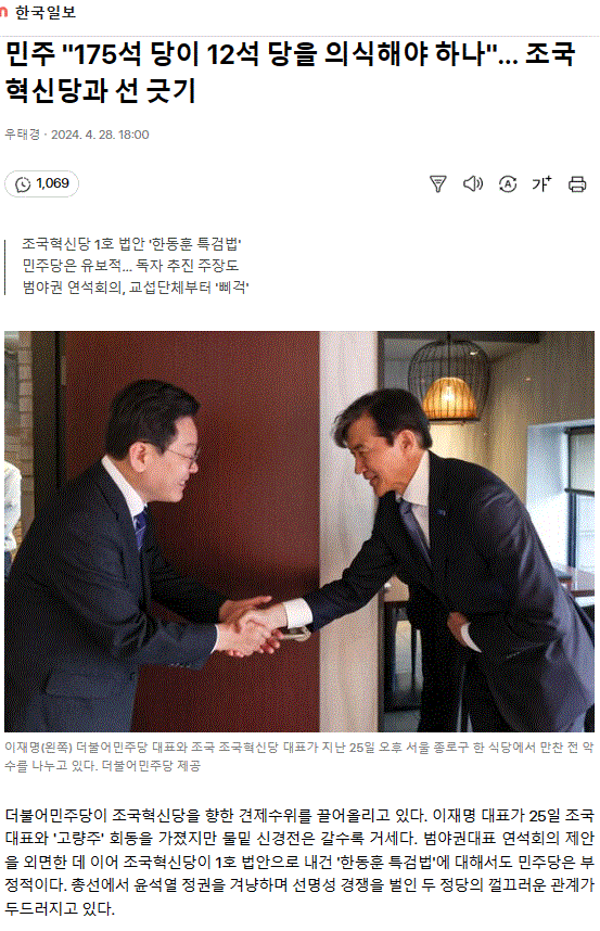 민주 "175석 당이 12석 당을 의식해야 하나"... 조국혁신당과 선 긋기