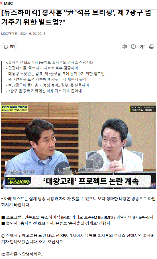 [뉴스하이킥] 홍사훈 "尹 '석유 브리핑', 제 7광구 넘겨주기 위한 빌드업?"