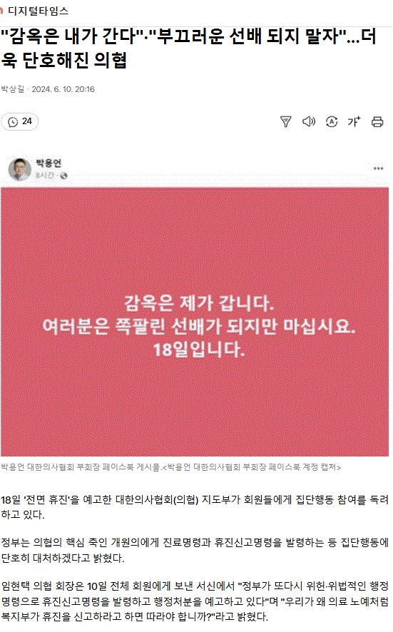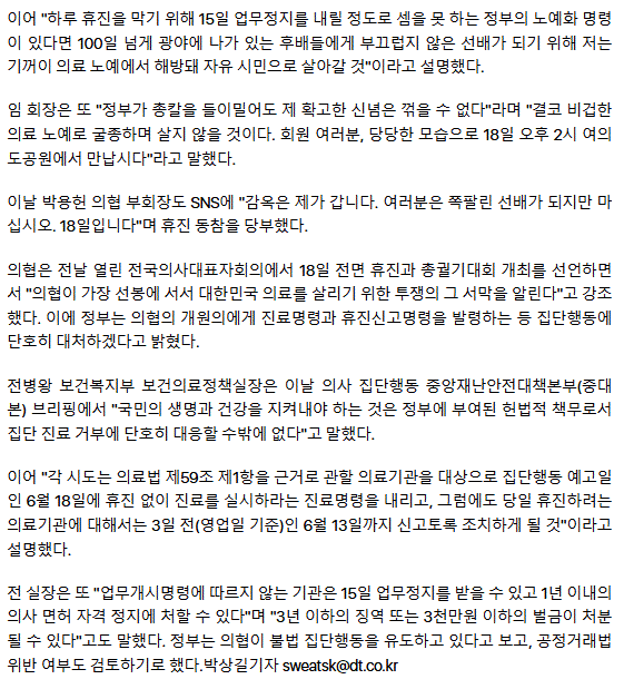 "감옥은 내가 간다"·"부끄러운 선배 되지 말자"…더욱 단호해진 의협