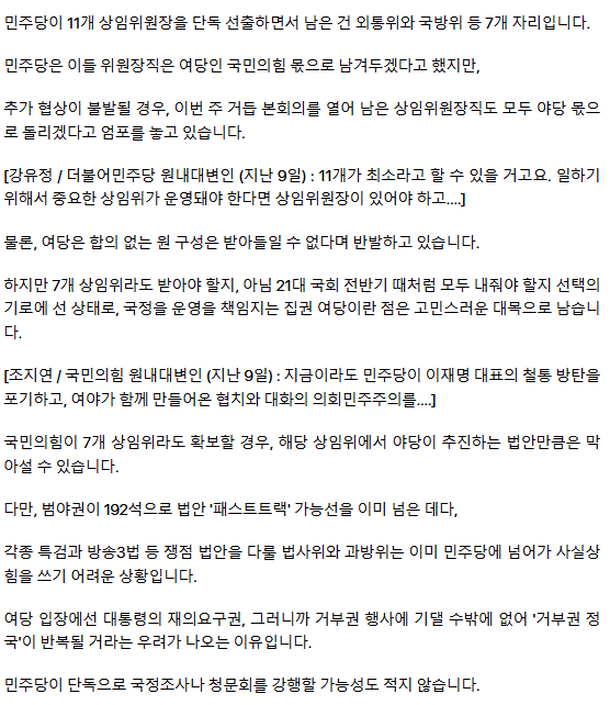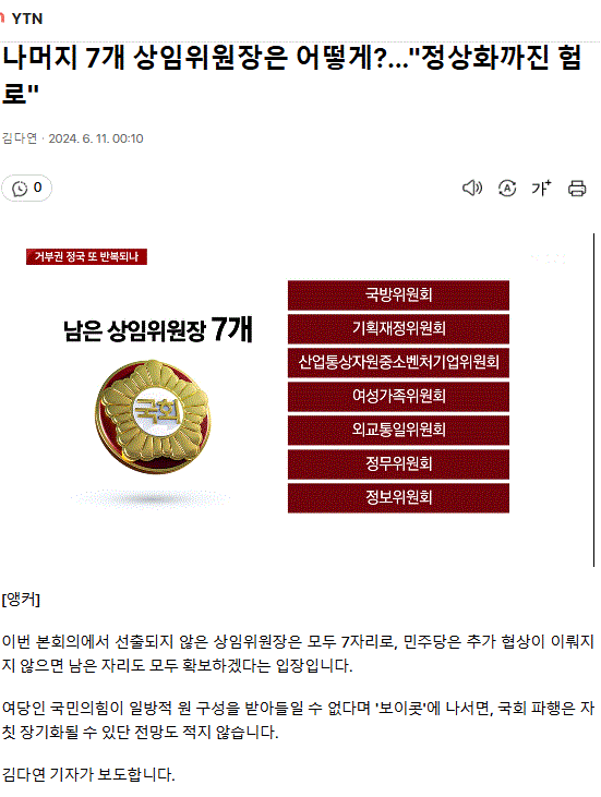 나머지 7개 상임위원장은 어떻게?..."정상화까진 험로"