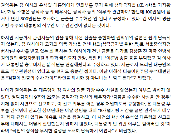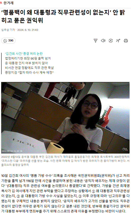 ‘명품백이 왜 대통령과 직무관련성이 없는지’ 안 밝히고 묻은 권익위