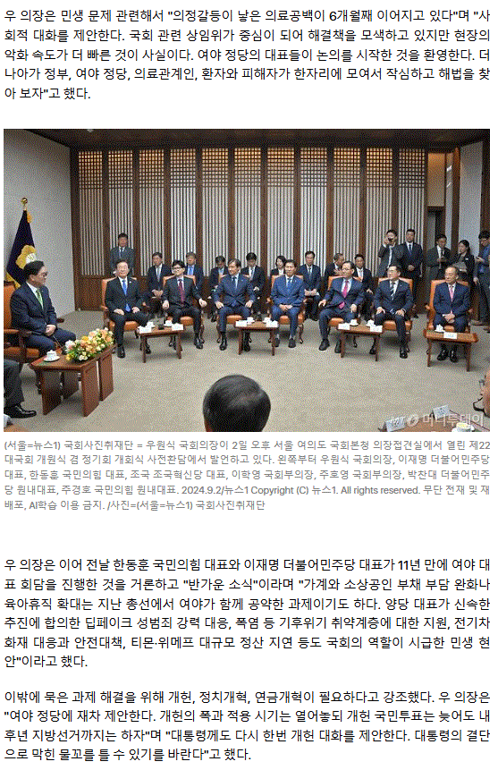 대통령 불참 속 '최장 지각' 개원식··· 우원식 "尹에 개헌 대화 제안"