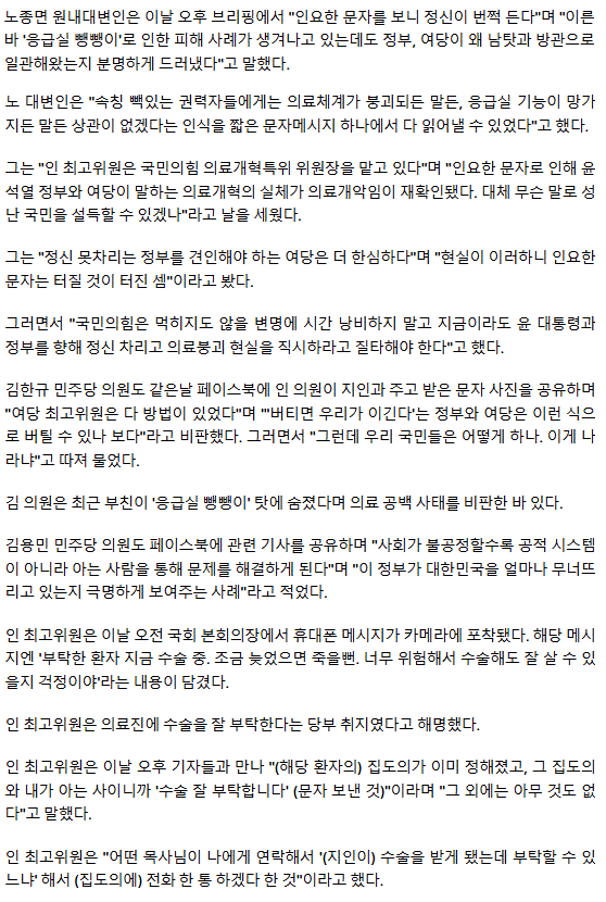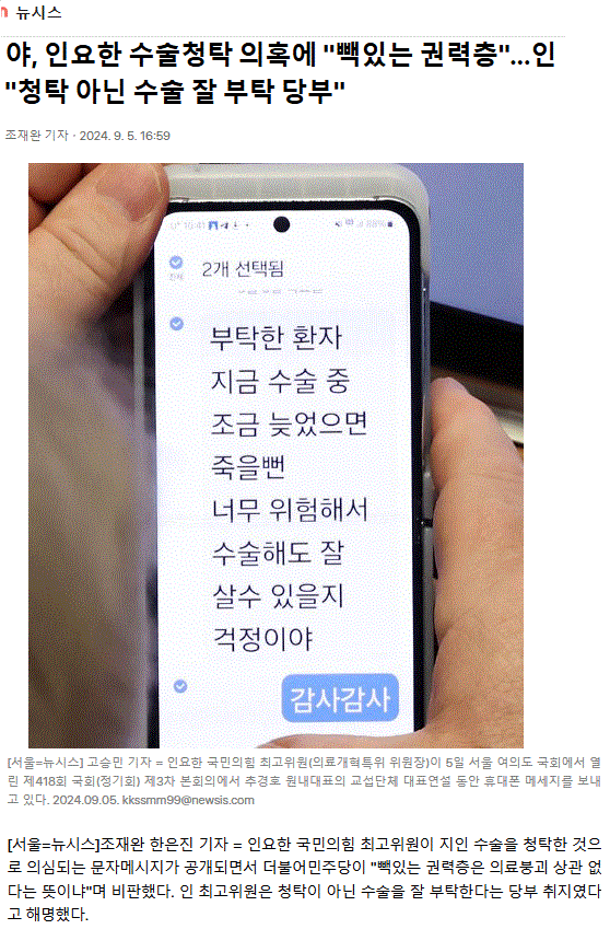 야, 인요한 수술청탁 의혹에 "빽있는 권력층"… 인 "청탁 아닌 수술 잘 부탁 당부"