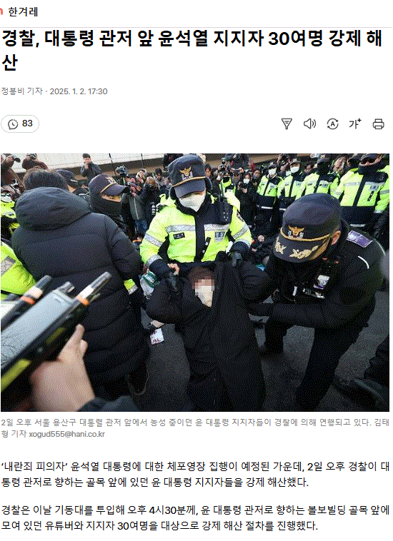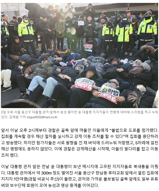 경찰, 대통령 관저 앞 윤석열 지지자 30여명 강제 해산