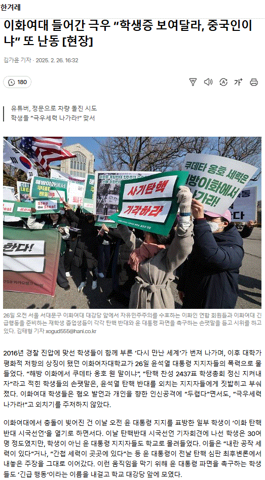 이화여대 들어간 극우 “학생증 보여달라, 중국인이냐” 또 난동 [현장]