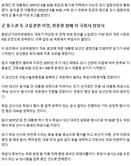 선관위 대통령 당선 확정 후 임기 시작… 군통수권 자동 이양