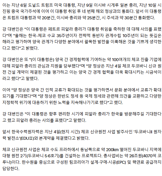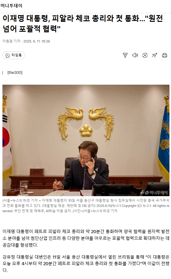 이재명 대통령, 피알라 체코 총리와 첫 통화… "원전 넘어 포괄적 협력"