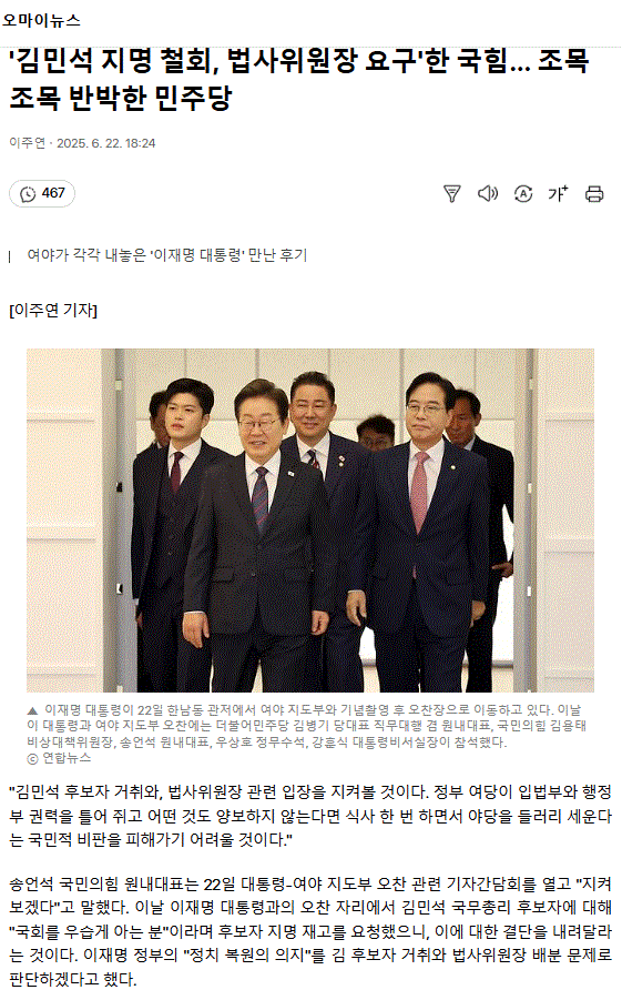 '김민석 지명 철회, 법사위원장 요구'한 국힘... 조목조목 반박한 민주당