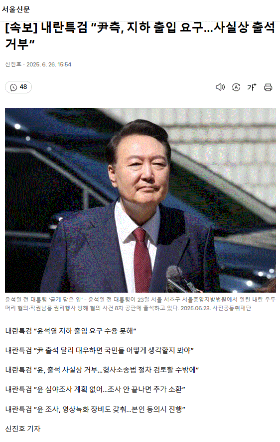 [속보] 내란특검 “尹측, 지하 출입 요구… 사실상 출석 거부”ㅡ 요구하면 들어주는 거 아냐