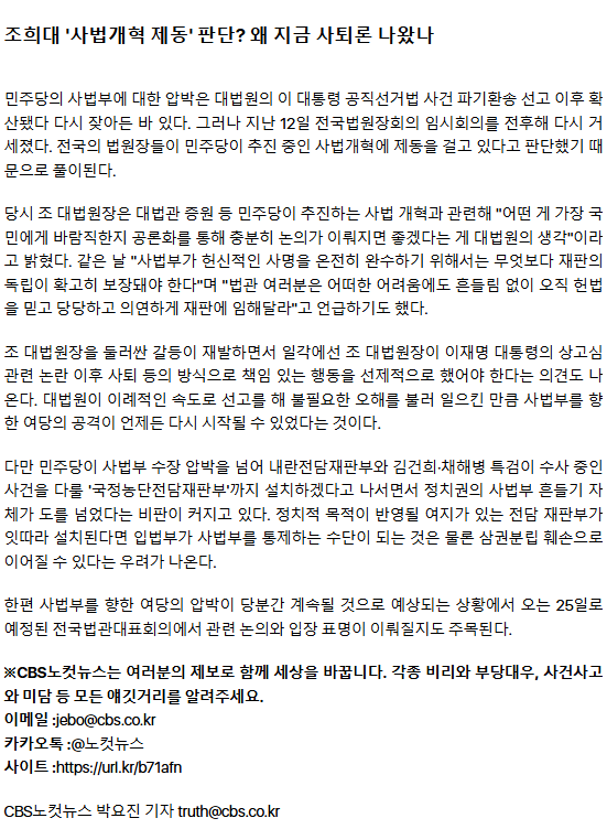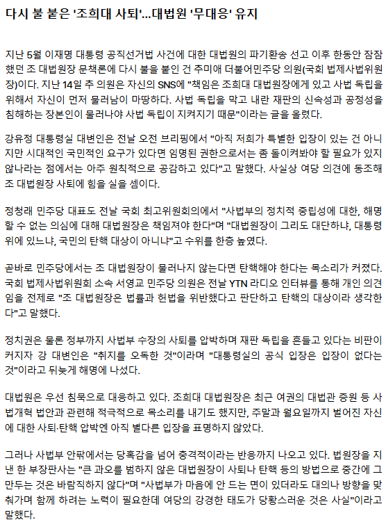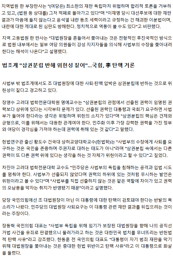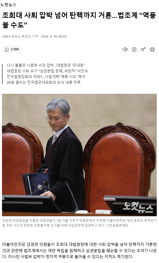 조희대 사퇴 압박 넘어 탄핵까지 거론… 법조계 "역풍 불 수도"ㅡ 역풍 없다