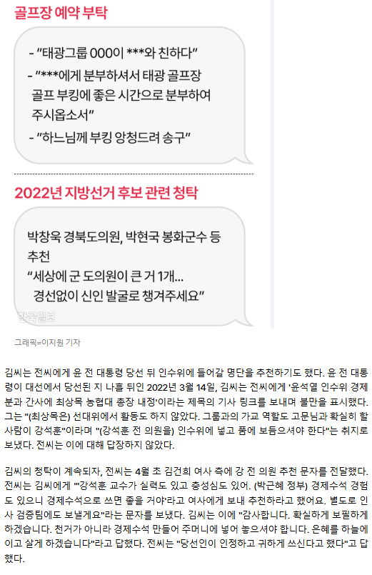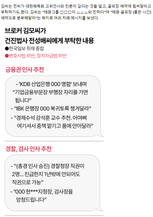 [단독] 브로커, 건진법사에 "은행장 자리 챙겨달라" "골프장 좋은 시간 앙청" 부탁