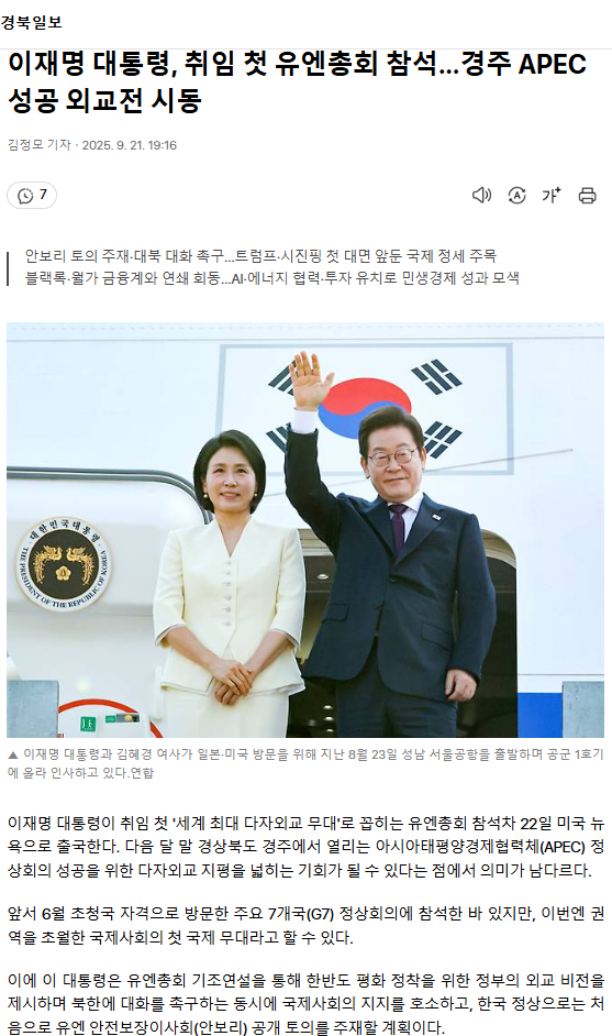 이재명 대통령, 취임 첫 유엔총회 참석… 경주 APEC 성공 외교전 시동