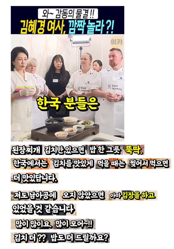 김혜경 여사 깜짝 놀란~ 감동의 물결은 ?! ㅡ 김치 알리는 여사
