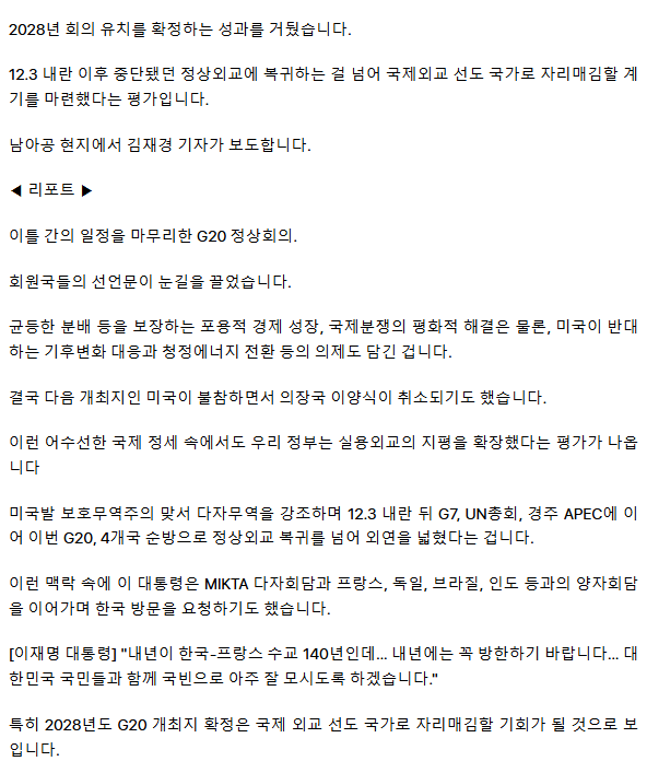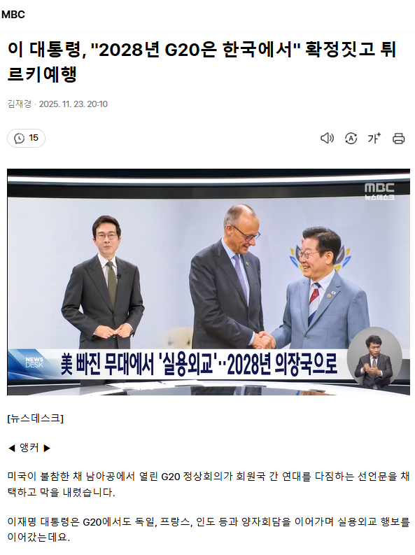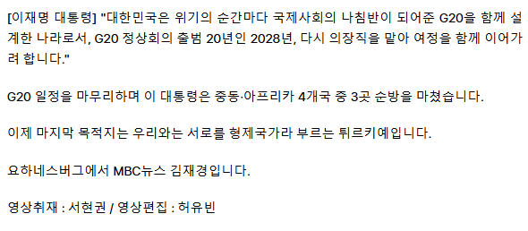 이 대통령, "2028년 G20은 한국에서" 확정 짓고 튀르키예행