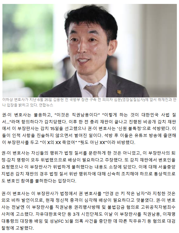 [단독] "해보자는 거냐" 김용현 변호인단, 판사에 위자료 소송도 ㅡ 이하상, 권우현 변호사