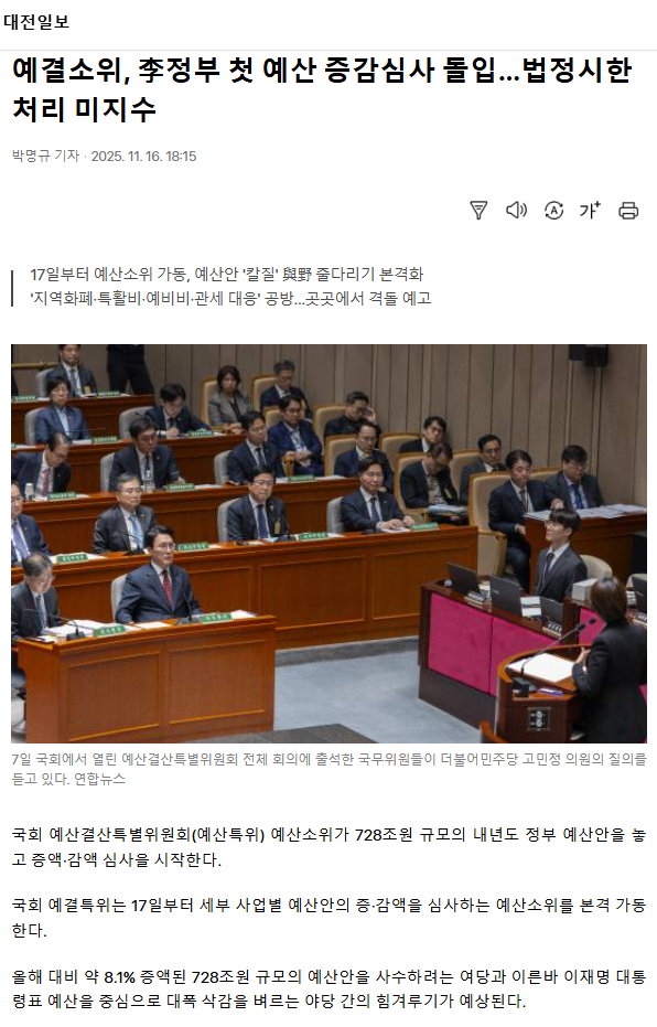 예결소위, 李정부 첫 예산 증감심사 돌입… 법정시한 처리 미지수