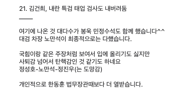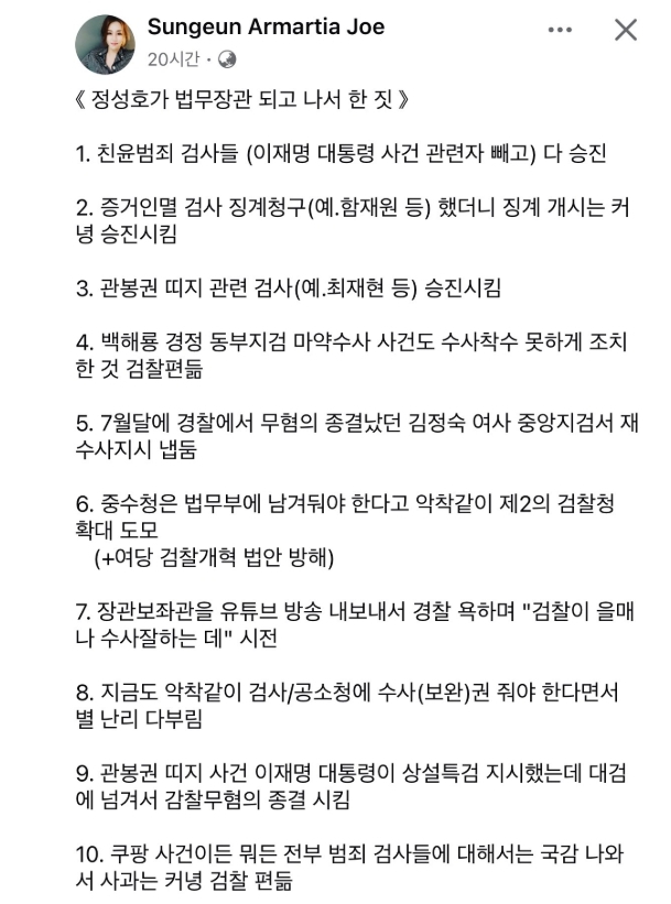 조성은이란 자가 정성호법무부장관에 대한 악마화와 거짓뉴스가 도를 넘는것으로 보입니다