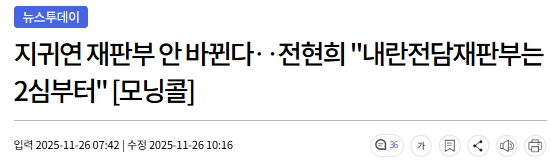 지귀연재판부 그대로 두고 2심부터 하겠다는 것이네