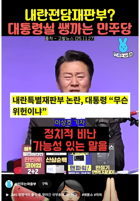 대통령에게 정치적비난 책임을 또 떠넘기고 민주당지도부는 내란전담재판부를 2심부터 진행하는걸로 해서