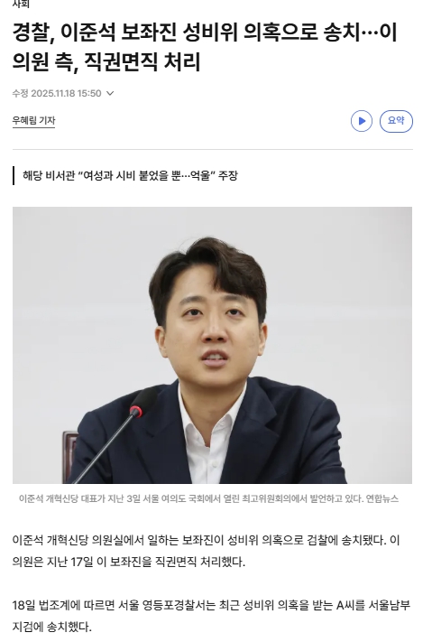 아래 이준석 보좌진 성비위사건 뉴스는 님들도 보셨을 거에요