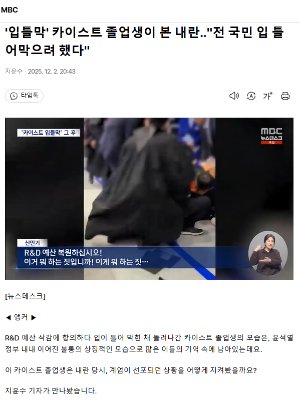 '입틀막' 카이스트 졸업생이 본 내란‥"전 국민 입 틀어막으려 했다"