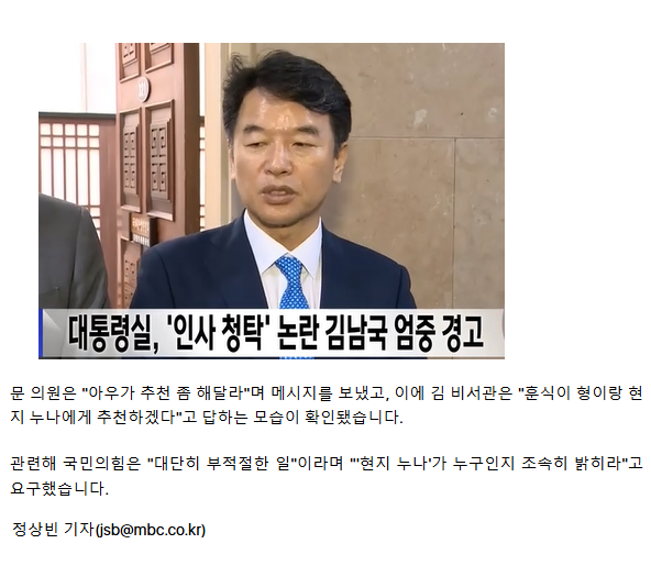 대통령실, '인사 청탁' 논란 김남국 엄중 경고 ㅡ 문진석의원직 사퇴하고, 김남국은 사퇴하라
