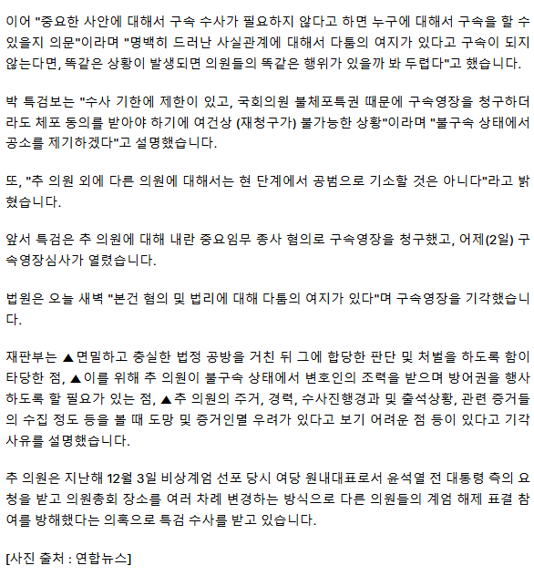 특검, 추경호 의원 불구속기소 방침… “영장기각 수긍 어려워”