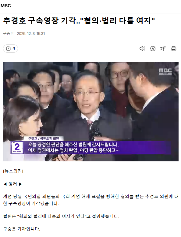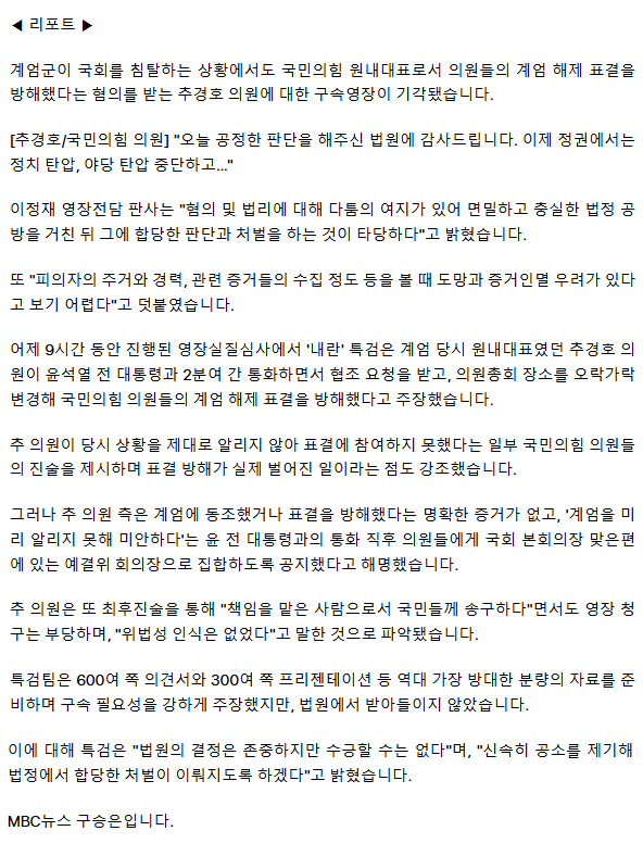 추경호 구속영장 기각‥ "혐의·법리 다툼 여지"ㅡ 추경호 내란 계엄 해제 방해를 처벌하라