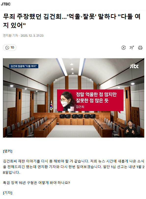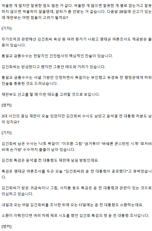 무죄 주장했던 김건희… '억울·잘못' 말하다 "다툴 여지 있어"