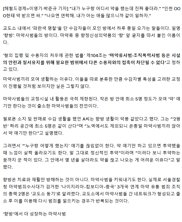 [단독] ‘좁은 감방 하루 종일 마약 얘기만 오갔다’ 사법체계 오히려 마약사범 키운다 [백색가루의 종착지]