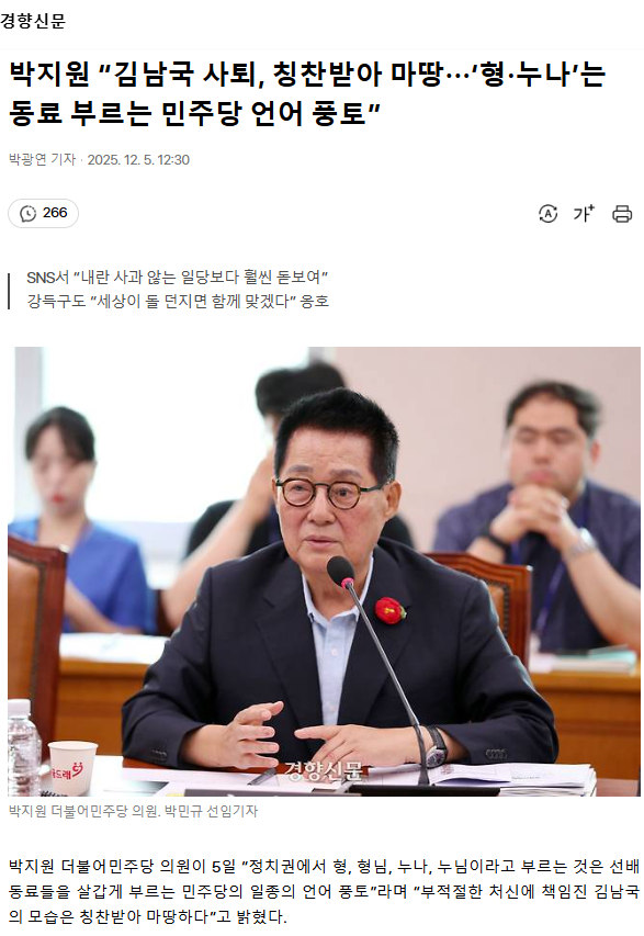 비토 합니다 정청래대표는 책임지고 사과하구 사퇴해야 합니다. 이런 분란을 만드는 당대표는 필요 없습니다. 말로만 내란척결? 아직도 내란특별재판부법 통과 시키지 않았습니다.1년이 넘었습니다. 엉뚱한 1:1 이란것에만 몰두하고 정작 젤 급한 내란특별재판은? 관심없지요. 정청래대표는 이재명댸통령을 싫어 합니다. 여기 증거를 보여 드리겠습니다. https://m.youtube.com/watch?v=kqmTBGC7ElI