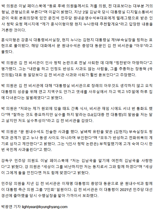 문진석이 이번이 처음도 아니고 문자노출 일부러 그러는거 아님? 김남국도 사퇴했는데 원인 제공자 문진석은 왜 입꾹닫임? 이쯤되면 세작아니냐?