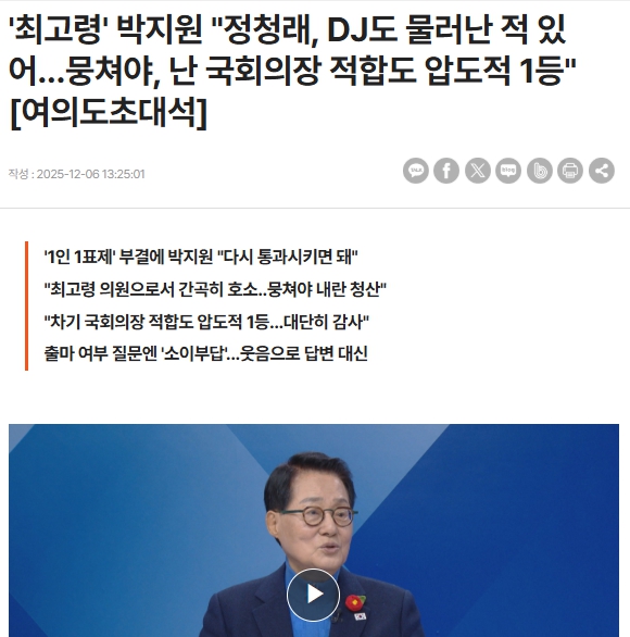 민의를 제대로 파악 못하는 박지원의원님 국회의장하고 싶은 노욕을 내려놓으세요