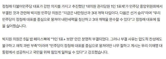 지금은 이재명 대통령을 중심으로 민주당이 협력하면서 내란청산하고 개혁을 이루어나가야 합니다