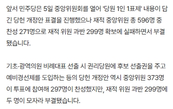 1인1표제건으로 지지자들이 투표를 보이콧하고 정청래 사퇴를 외치는 이유를 제대로 파악하지 못하고