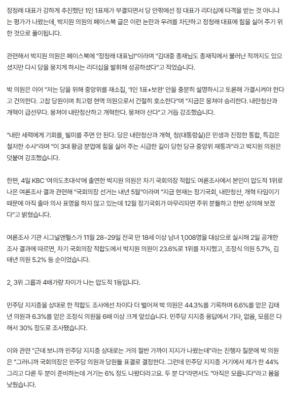 하는 원인이 될 수 있습니다 민주당 원로로서 정청래딴대에게 당원들 소리에 귀기울이라는 쓴소리를 하셔야지