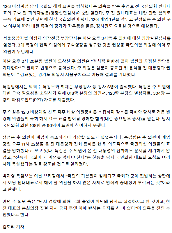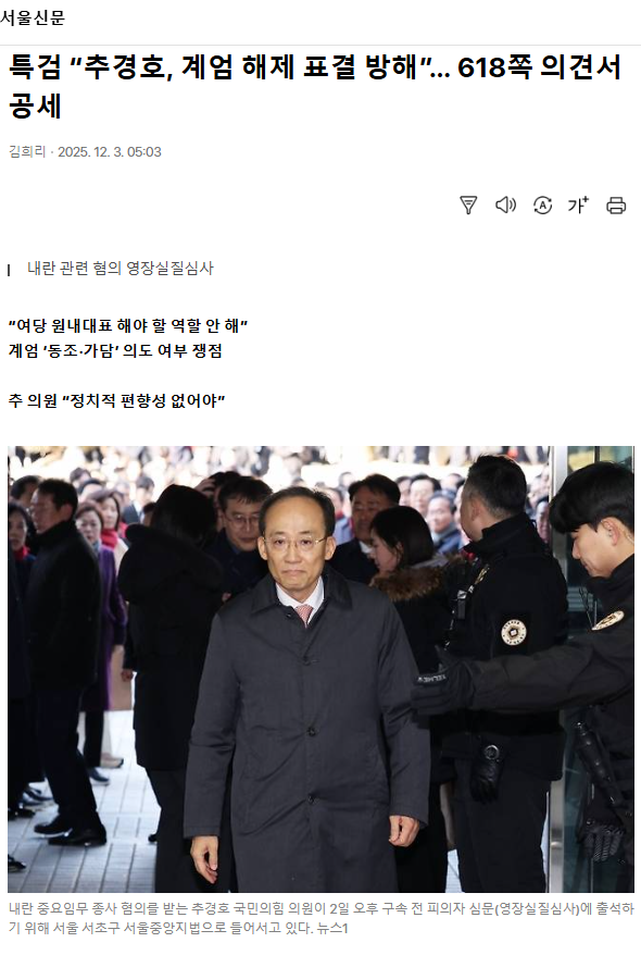 특검 “추경호, 계엄 해제 표결 방해”… 618쪽 의견서 공세 ㅡ 영장판사가 내란공범 인증하니
