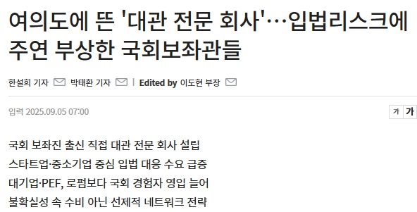 새로 꾸리며 대관 역량 강화에 집중했다. 해당 위원회는 기존 국회 정당 대응 중심의 대관팀과는 별도로
