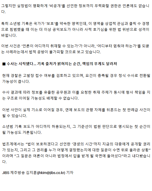 “30년 전 소년범 기록, 지금 공개할 권리 있나”… 은퇴 부른 첫 보도, 결국 ‘형사 고발’로 ㅡ 소년법 70조 정면 충돌