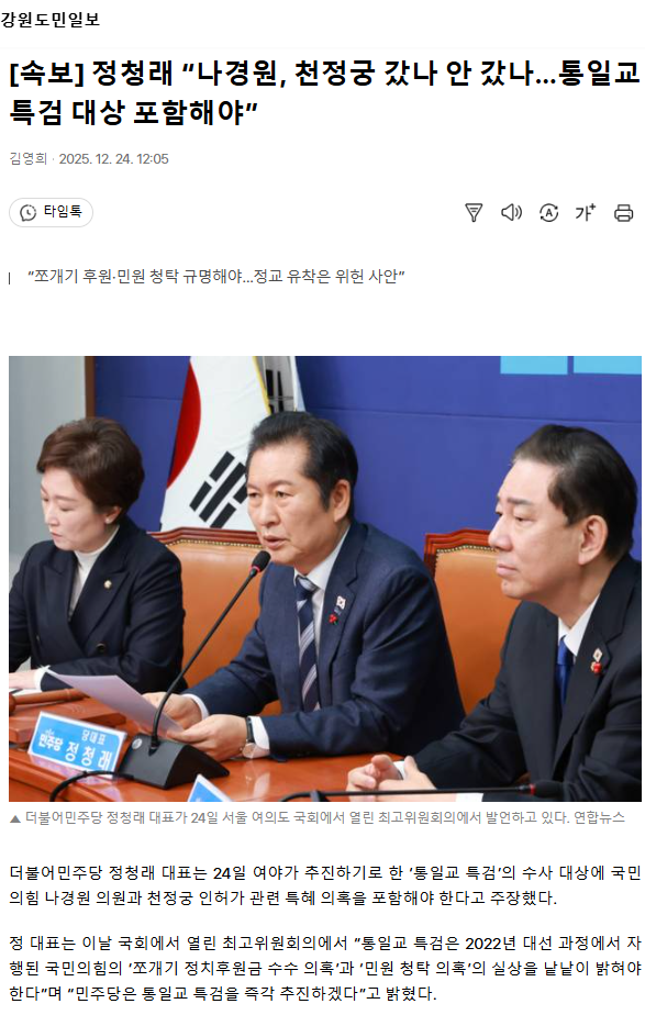 [속보] 정청래 “나경원, 천정궁 갔나 안 갔나… 통일교 특검 대상 포함해야”ㅡ 왜 말을 못해