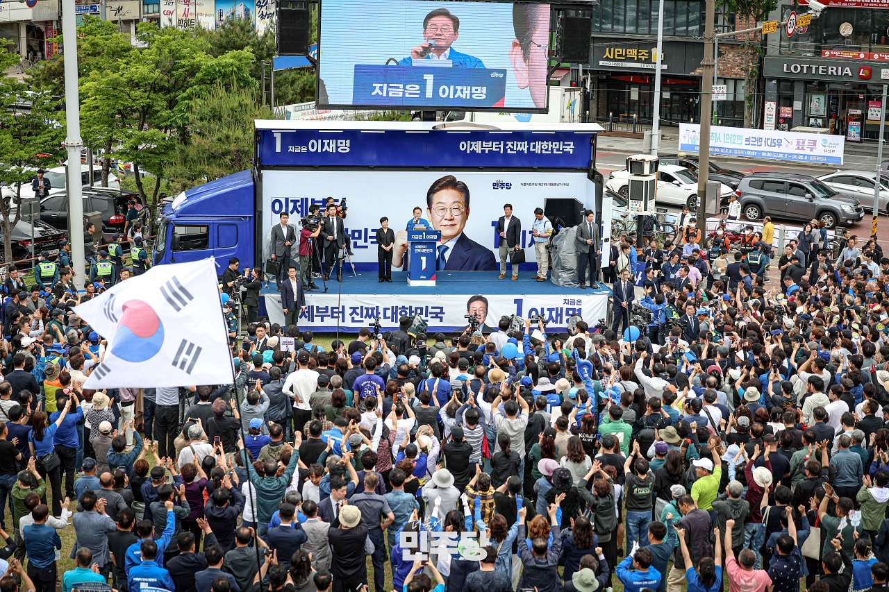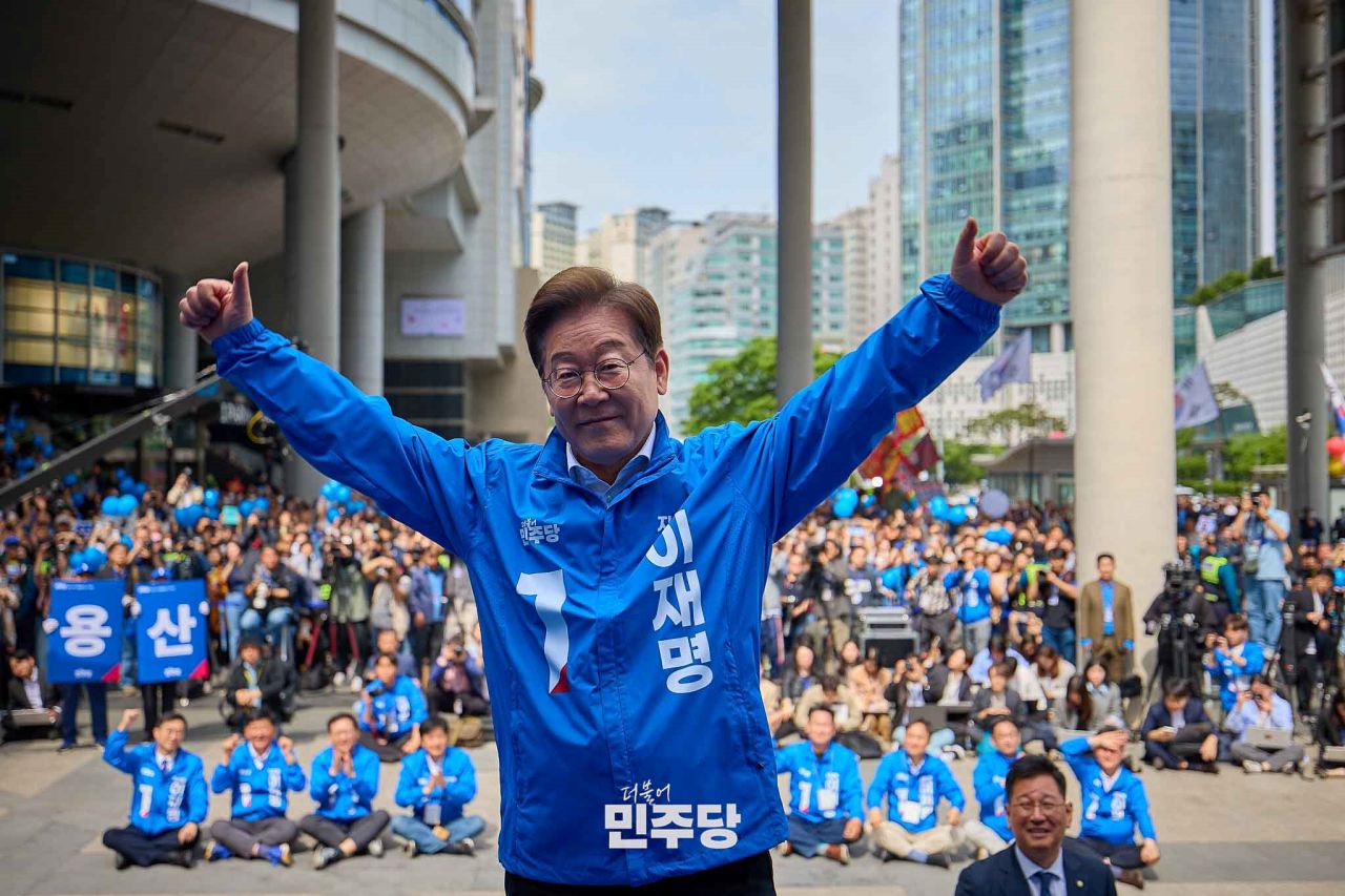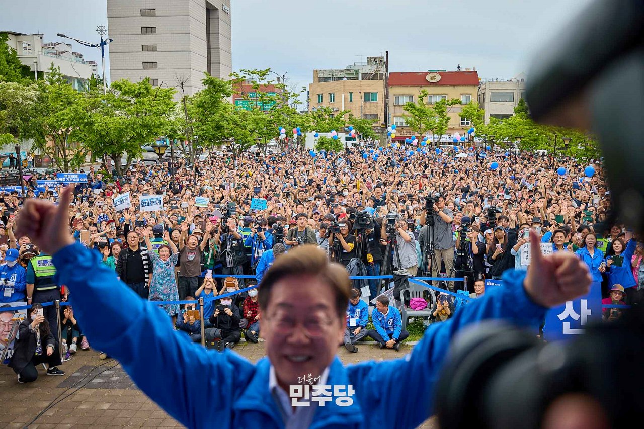 이재명 대통령후보가 2025.05.19.(월) 서울 용산구 용산역 광장에서 집중유세를 하고 있다.