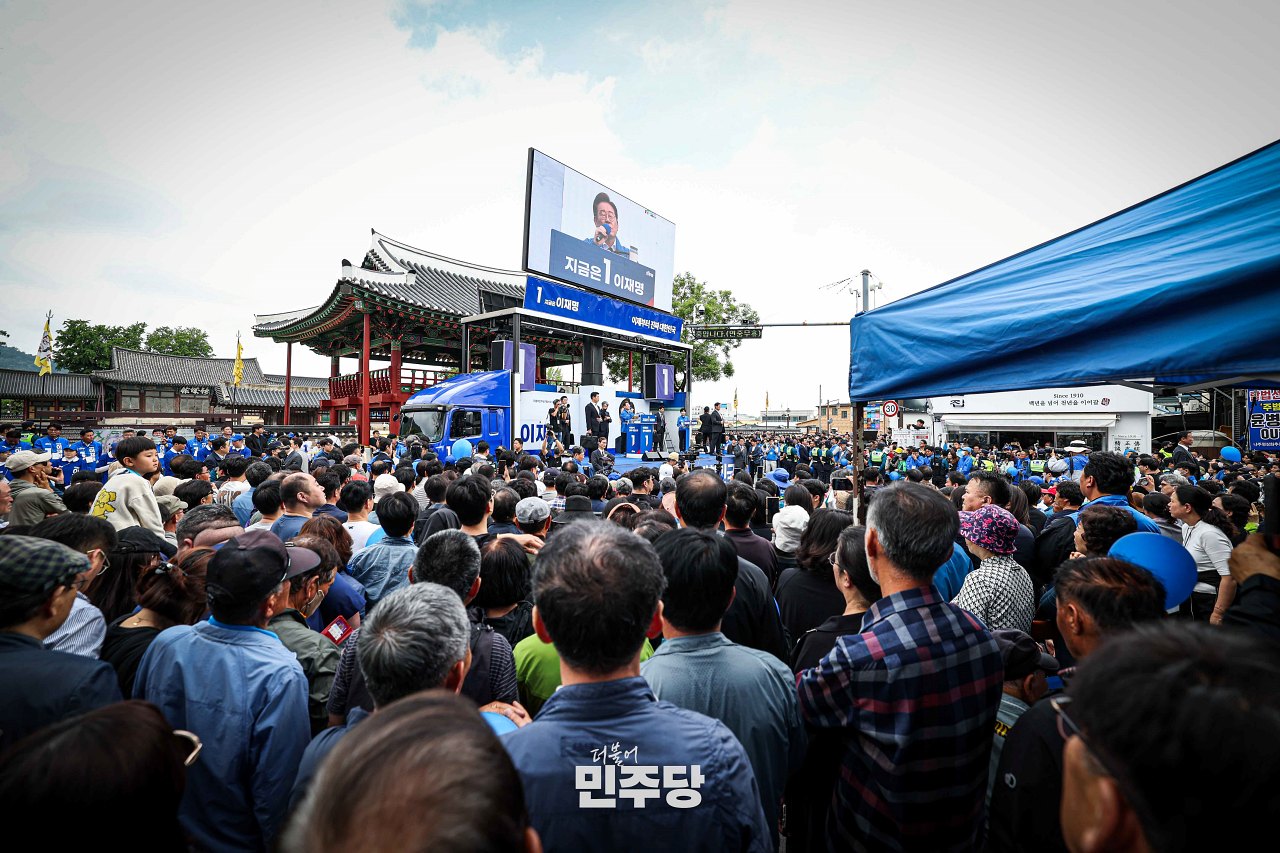 이재명 대통령 후보가 2025.05.16.(금) 전북 전주시에 위치한 전북대학교 앞에서 집중유세를 하고 있다.