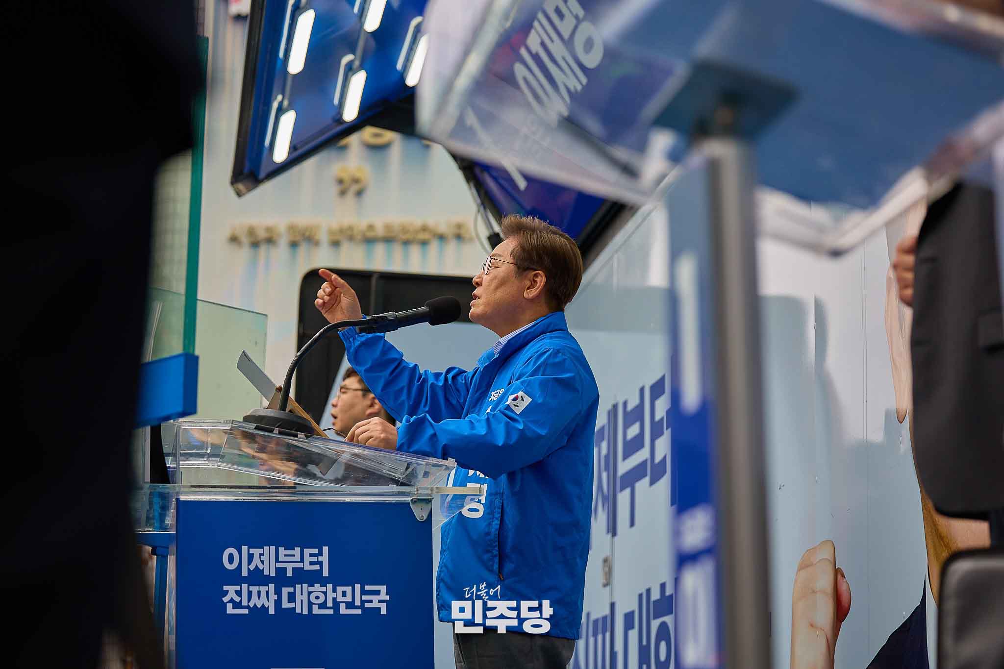 이재명 상임선대위원장이 2024.04.06.(토) 경기 김포시에서 김포시을 박상혁 후보 지지유세를 하고 있다.