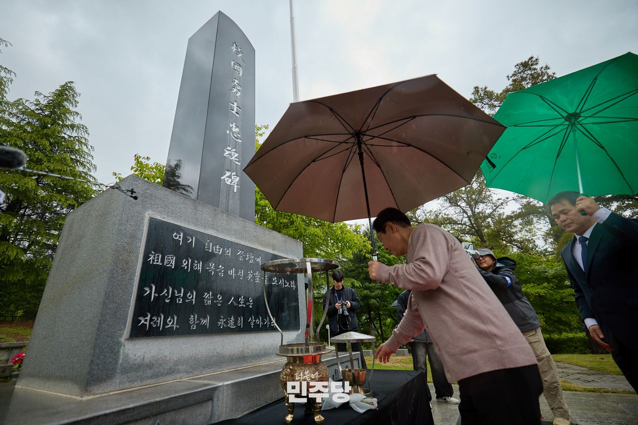 이재명 대통령 후보가 2025.05.09.(금) 경북 칠곡에 위치한 다부동 전적기념관에 방문하여 구국 용사 충혼비에 참배를 드리고 있다.