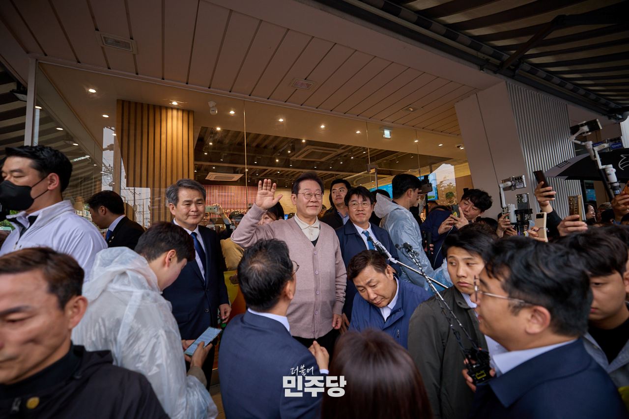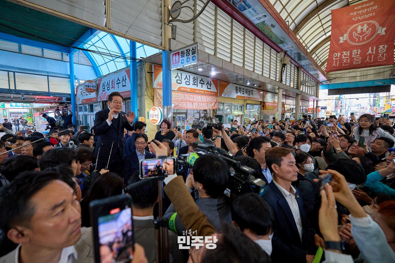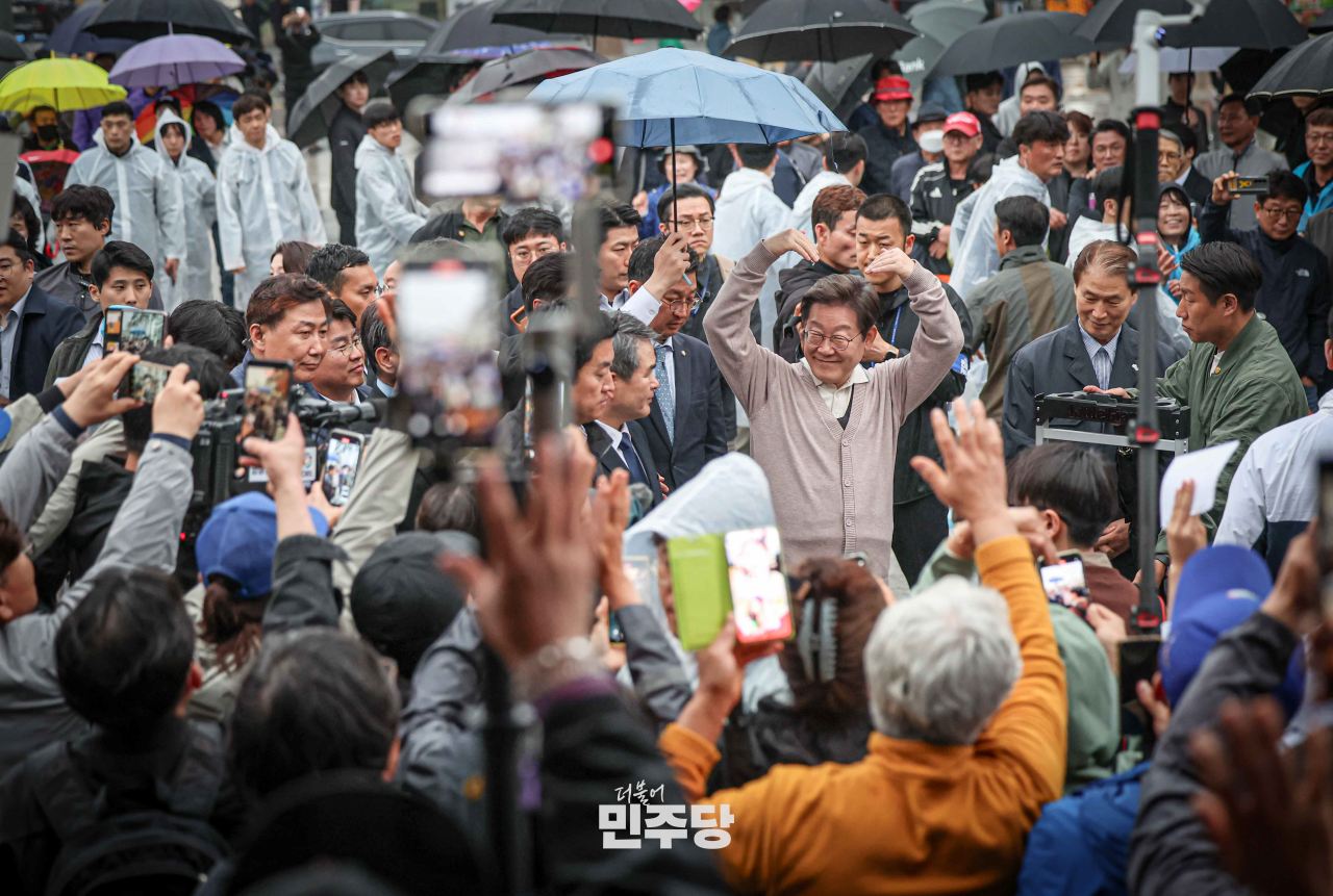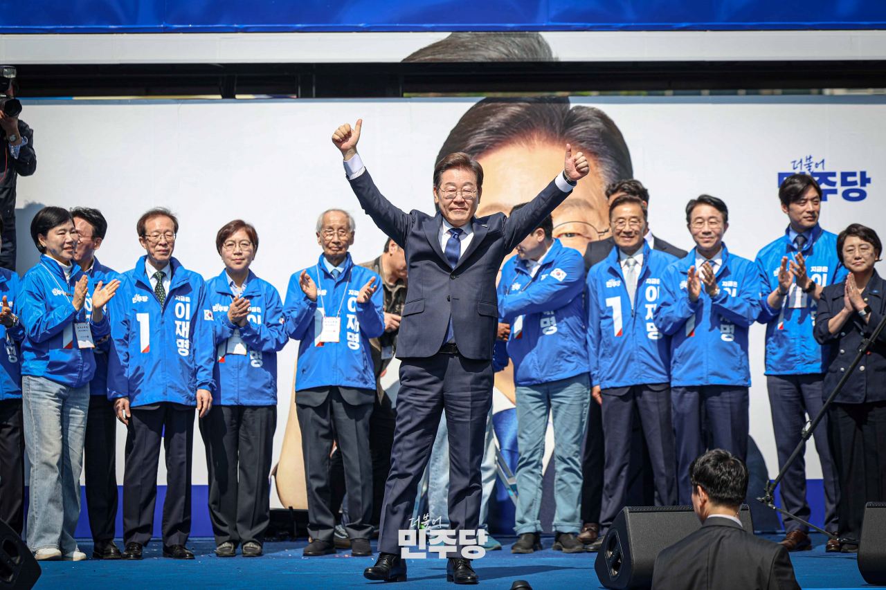 이재명 상임선대위원장이 2024.04.06.(토) 경기 김포시에서 김포시을 박상혁 후보 지지유세를 하고 있다.