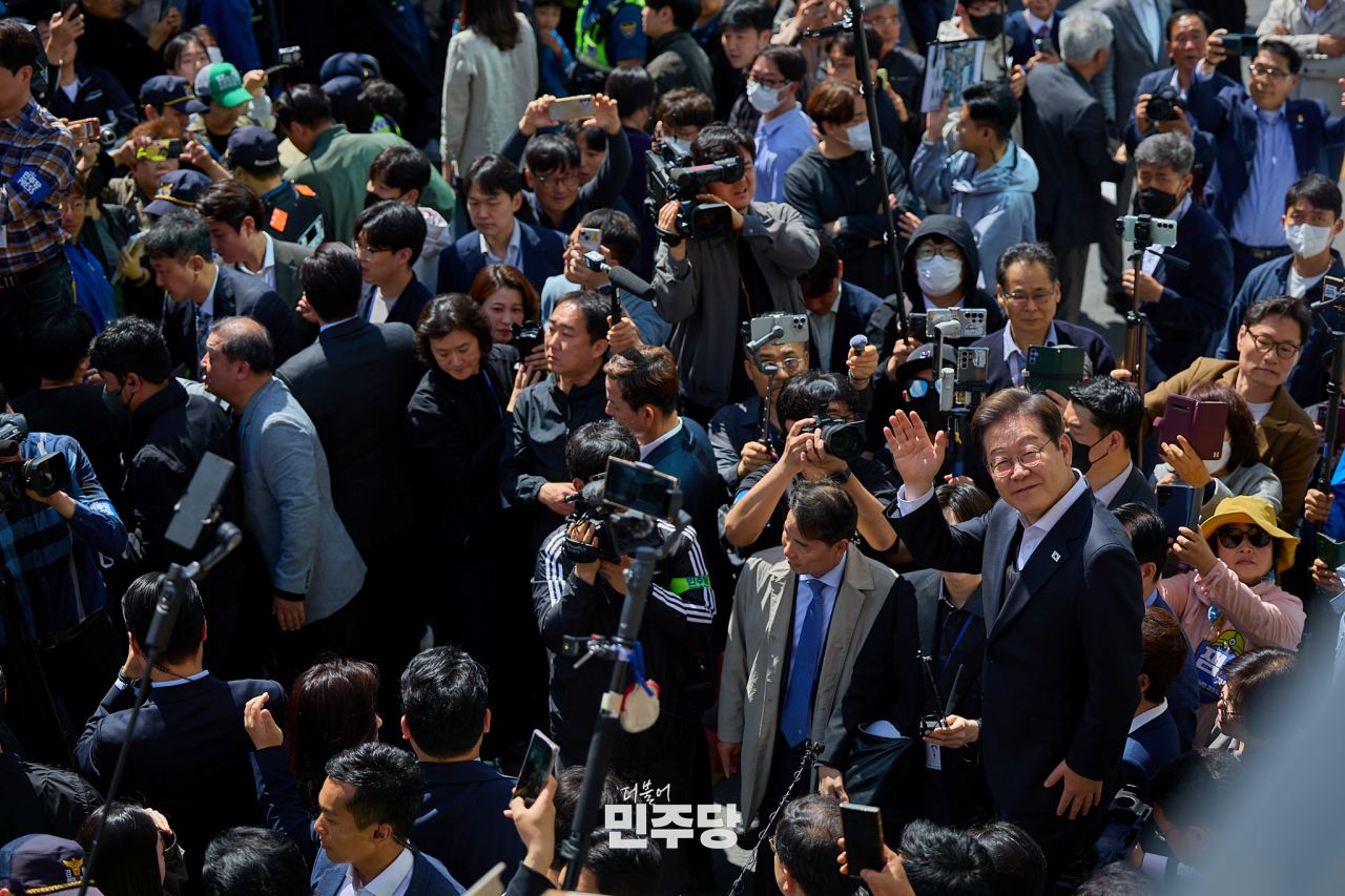 이재명 대통령 후보가 2025.05.12.(월) 서울 광화문에서 유세 출정식을 하고 있다.