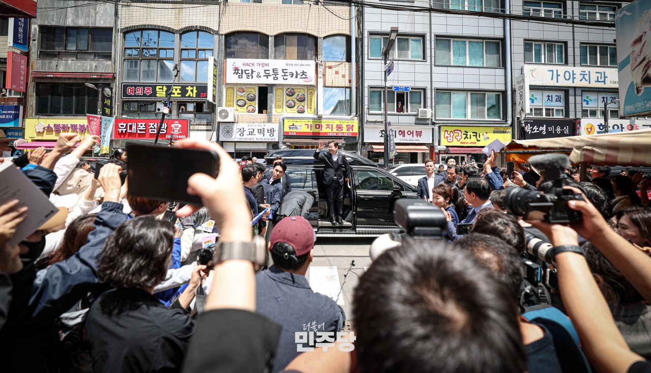 이재명 대통령 후보가 2025.05.10.(토) 경남 진주시에 위치한 대안동에 방문하여 국민들께 인사드리고 있다.