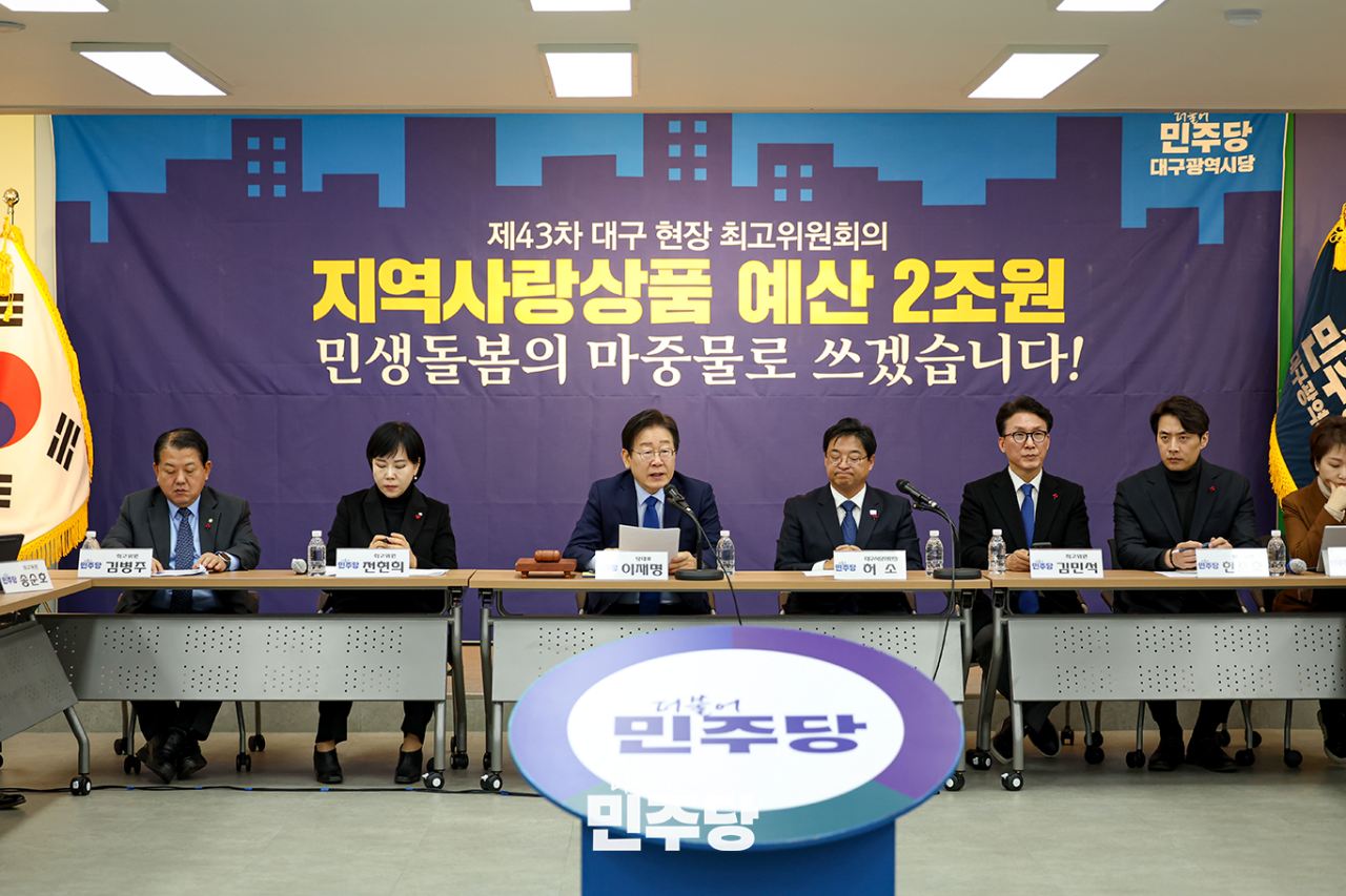 이재명 당대표가 2024.12.02.(월) 대구시당 김대중홀에서 열린 현장 최고위원회의에 참석하여 발언하고 있다.