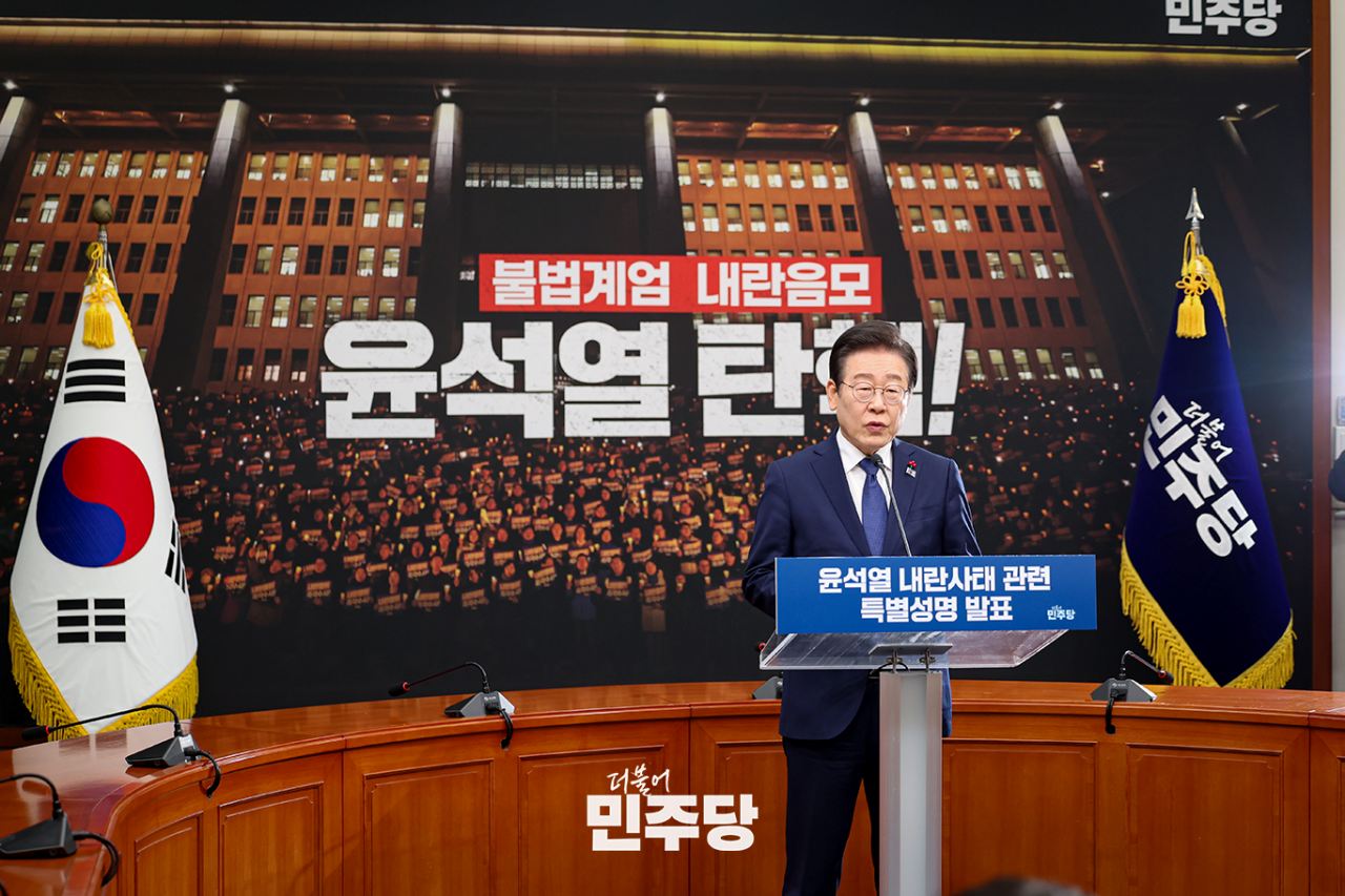이재명 당대표가 2024.12.13.(금) 국회 본청 당대표회의실에서 윤석열 탄핵 관련 성명을 발표하고 있다.